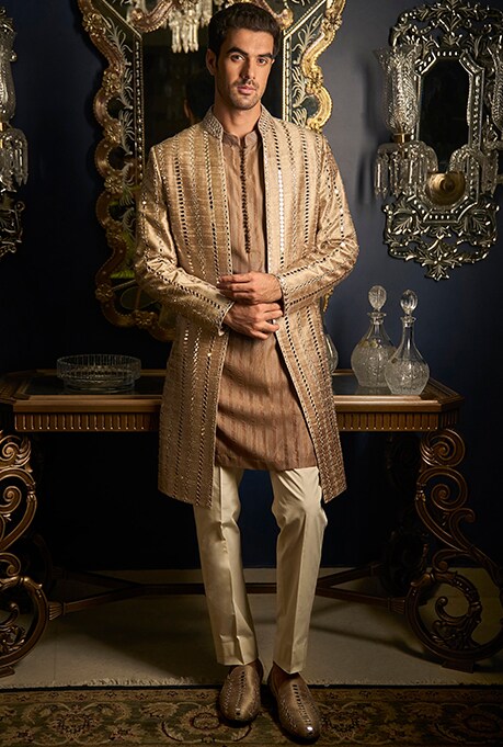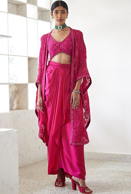 Looking to incorporate a chic and charming addition to your lehengas, sarees, and kurta sets? Consider combining capes and jackets to your repertoire. Whether it is an embellished organza jacket or a dapper, meticulously crafted bundi set, this trend brings a fresh and edgy look while maintaining the cultural aesthetics that resonates with today’s fashion-conscious audience.
