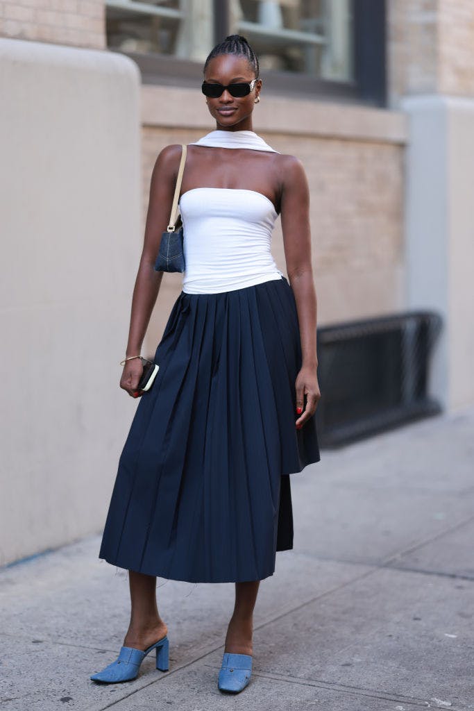 Denim skirts have never really gone out of style, but they’re more relevant than ever right now. The true capsule wardrobe essentials are beyond easy to style. Elevated cuts, innovative washes, and versatile styling have redefined this classic. You can style midi and maxi lengths with a classic white T-shirt or a formal shirt and a miniskirt with a crop top or a structured blazer.