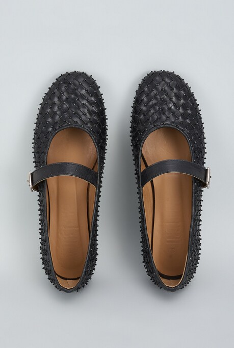 Despite the ebb and flow of trends, the desire for embellished ballet flats remains steadfast and enduring. Ballerina flats have captivated the fashion crowds with their classic appeal. Originated in the 16th century in Europe and initially worn by men for dancing, it was during the 1950s that ballet flats gained popularity as everyday footwear for women, thanks to style icons like Audrey Hepburn, who famously wore them in the film “Funny Face”. Known for their slip-on style and lack of a heel, these are spotted everywhere, from city streets to outside runway shows and in office corridors and have taken over menswear wardrobes too. They are often swathed in crystals, delicate flowers, bows & rivets and are beloved for their playful yet elegant appeal. This multifaceted piece allows its wearers to choose a style that best suits their preferences and needs.