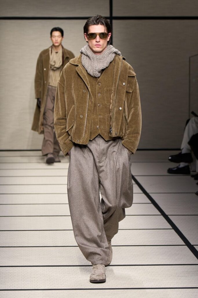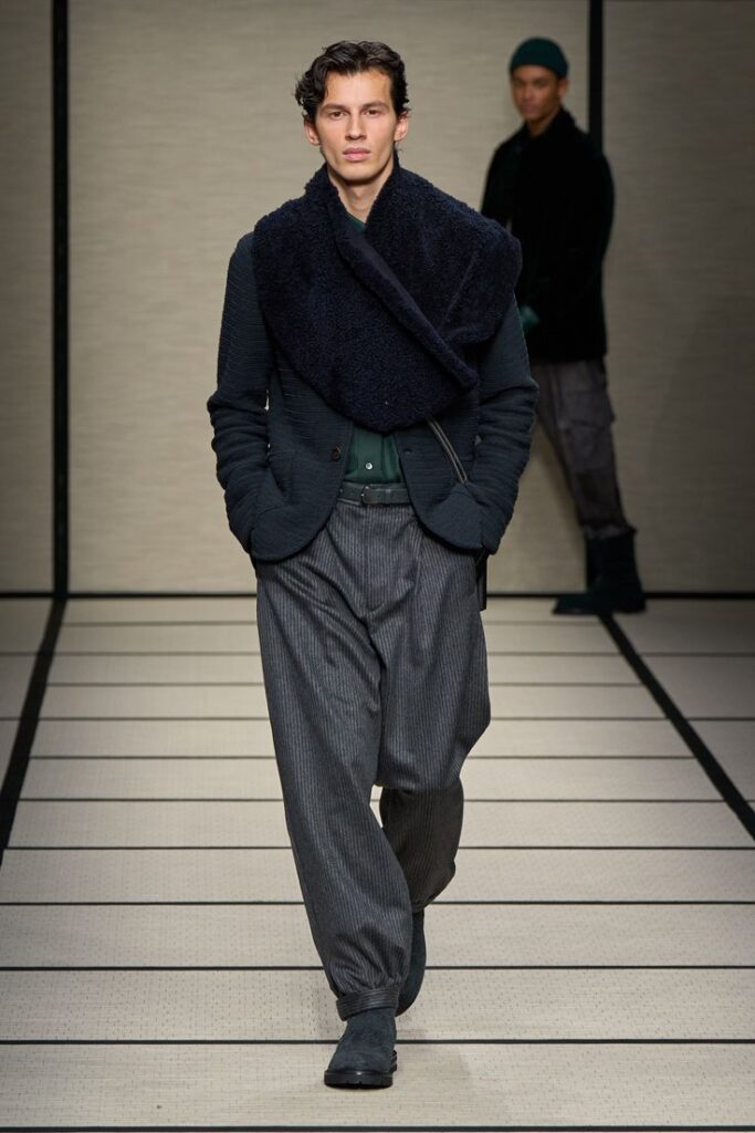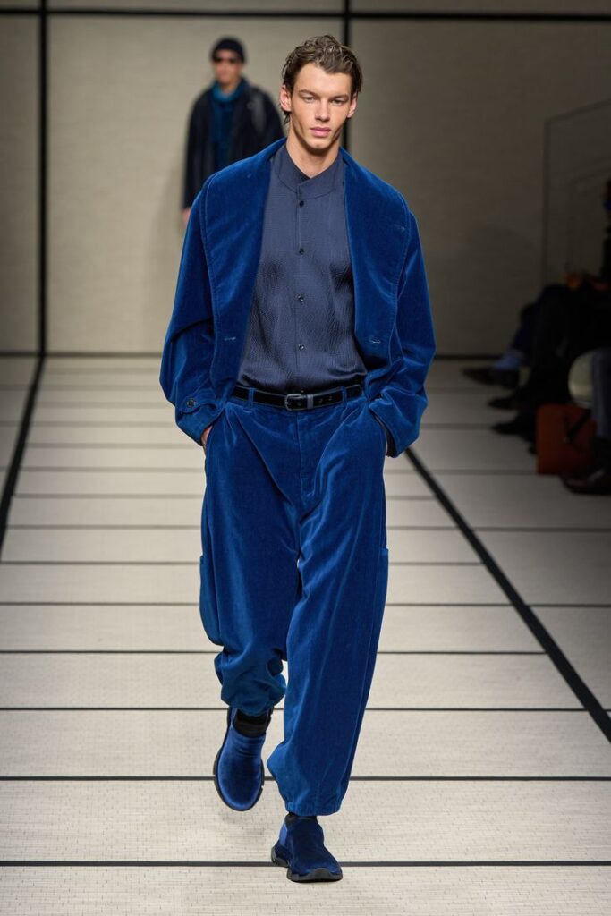 “Elegance to live in” was how Giorgio Armani described his menswear collection last season – a sentiment that perfectly captured fashion’s prevailing mood. Rejecting rigid dress codes and what the designer has often referred to as “pre-packaged formulas,” the collection embraced personal expression and ease over prescription.