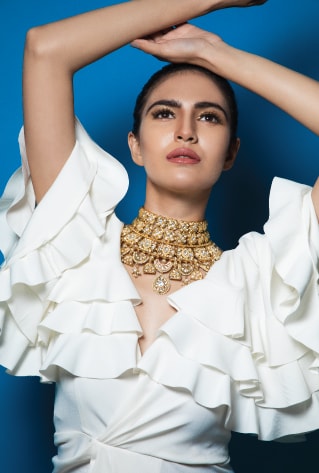 A meticulously-curated bridal trousseau must hold at least one heritage-worthy jewellery set; something that exudes royalty at every glance. A beautiful set jewelled with emerald or rubies makes for a perfect pick to accentuate your bridal glow. Style your cocktail look and reception appearance enriched with imperial nuances to channel a princess-like vibe.