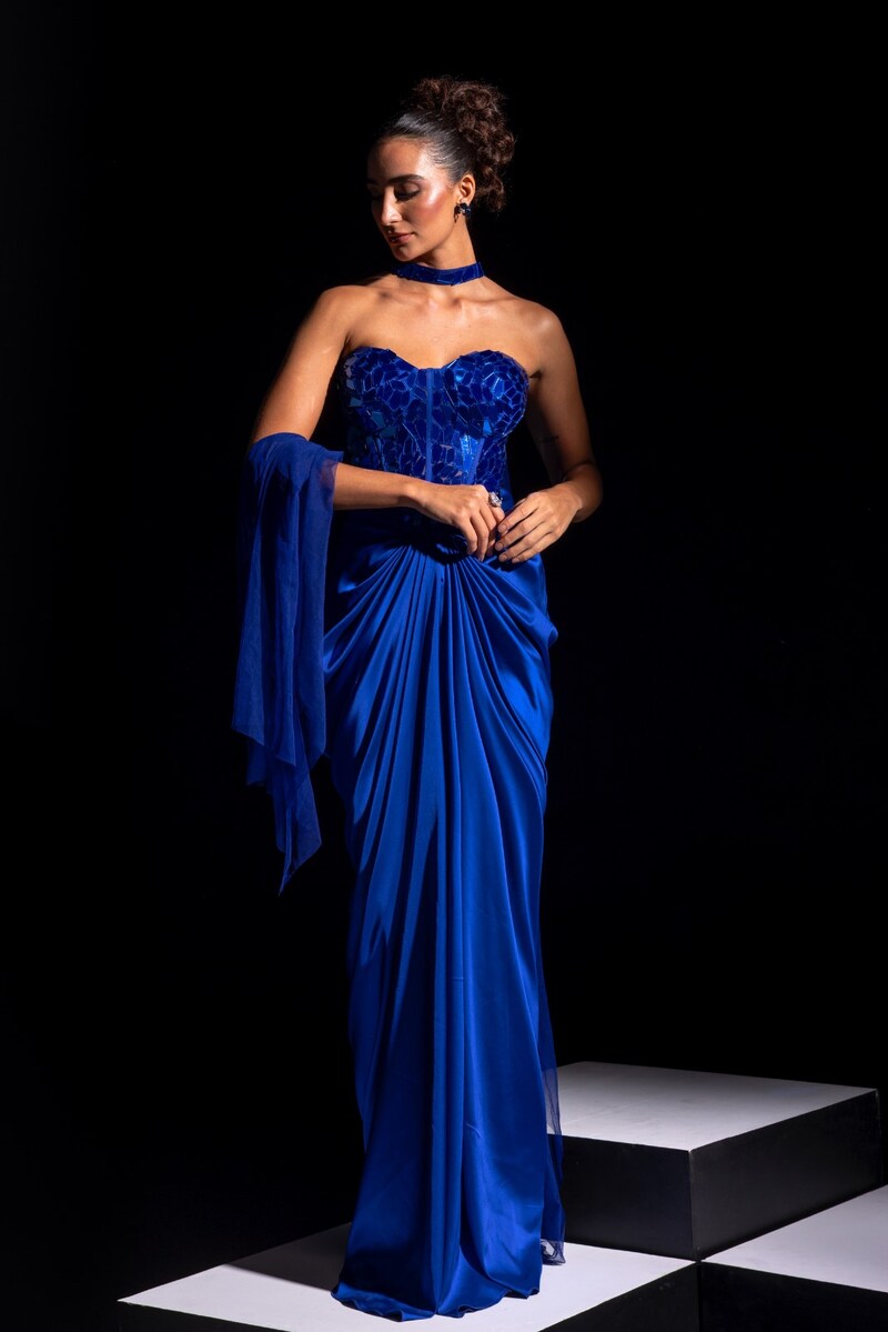 This Diwali, make your celebrations with friends truly unforgettable! While you focus on perfecting your card game, we’ll take care of your style inspo. Add a playful twist to the festivities with themed taash party outfits in striking black and midnight blue shades. Keep the look balanced with minimal fine jewellery and fresh, neutral makeup that highlights your natural glow.