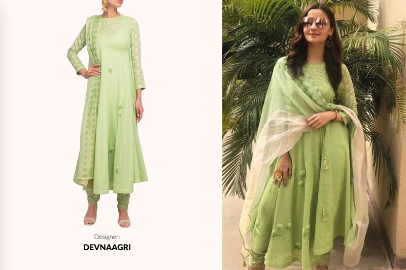 We rarely find Alia flaunting quintessential ethnic looks but when she does we can’t stop swooning. This angrakha style pastel number by Devnaagri is daintily embellished for a feast for the eyes and perfect for an Eid get-together.