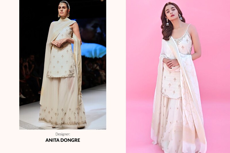 Giving heavy ensembles a miss, Alia chose an ethereally minimalistic sharara set in ivory hue to stay attuned to summer. This Anita Dongre masterpiece is sure to put everyone in the room under a spell with its charm.