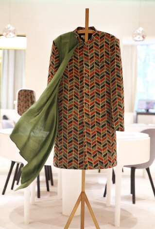 Fahd’s collection is coveted for his combination of ingenious and versatile styles which he renders with experimental fabrics, embroidered and presented to blend the classic old with the modern new. Synchronized with the pleasant festivities of the season, his repertoire at the special preview included bandi jackets, kurta sets, bandhgala, jodhpuris and sherwani ensembles that were brilliantly customized in textures, woven patterns and prints for svelte appearances while holiday-inspired shirts were perfect picks for jet-setter men.