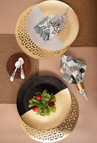 Whether you’re expecting important guests or not, there isn’t a bigger festive faux pass than an undone table. Swap your demure table essentials with intriguing pieces. Add a festive element with artfully printed napkin sets, servers and exquisite platters to make your appetizing food delightful at first glance.