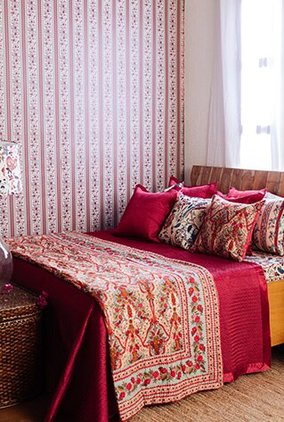 Grand gatherings are also about making the guests feel home-like. After all, you’ll be having people over all day long. Enhance your bedroom with bright quilts, cushion cover and intriguing lamp bases. Give the room a culture-enriched vibe with ethnic prints and warm colours.