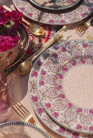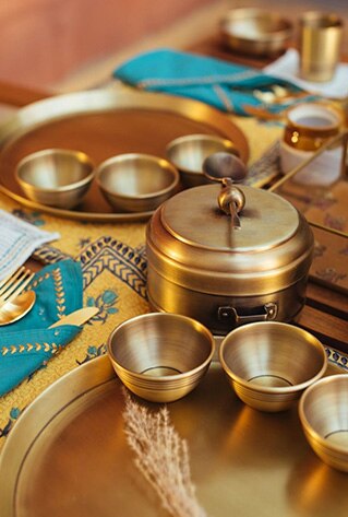 Hosting a Diwali taash party is never complete without decadent dinners. Exhibit your fine choice with tastefully handcrafted dining essentials. Take your pick from the vintage brassware casseroles, plates and bowls or signature print adorning pieces from Ritu Kumar Home