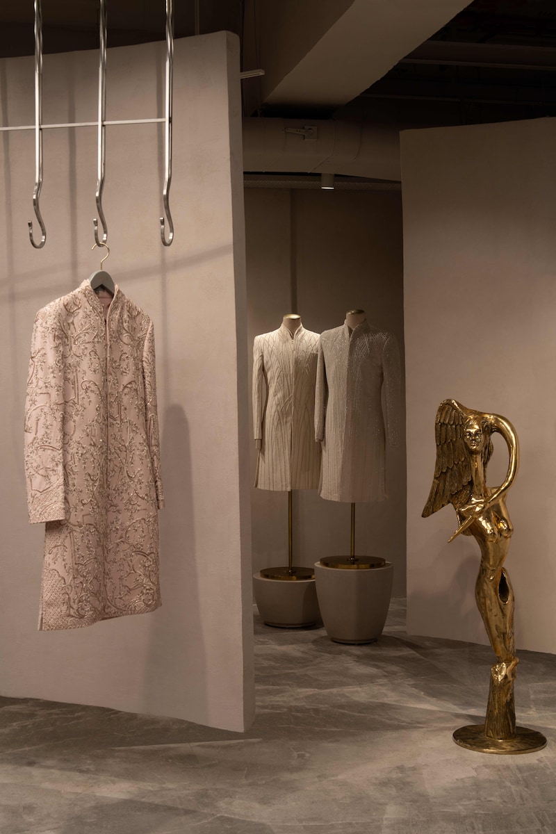 The flagship brings this evolution together under one roof. While signature offerings such as tuxedos, bandhgalas, and ceremonial tailoring remain central, the store also reflects a conscious expansion into new verticals, including kurtas and Nehru jackets, marking a deeper engagement with Indian menswear. The offering now spans structured jackets, draped silhouettes, shirts, accessories, bow ties, footwear, and finishing pieces, positioning the boutique as a complete, design-led menswear destination.