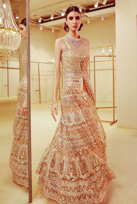 The dedicated spaces promise only the finest. Seema Gujral’s glamour-infused bridal ensembles strike the perfect chord with modern-day brides, and so do Papa Don’t Preach by Shubhika’s edgy-urban sensibilities with eclectic embellishments. Aisha Rao’s upcycled Occasion Wear embodies maximalism with delicate accents, while Aneesh Agarwaal’s designs make an unforgettable impression with subtlety.
