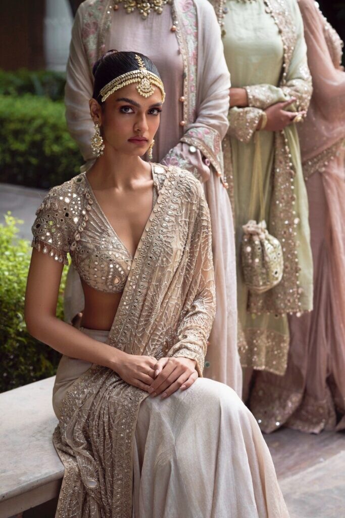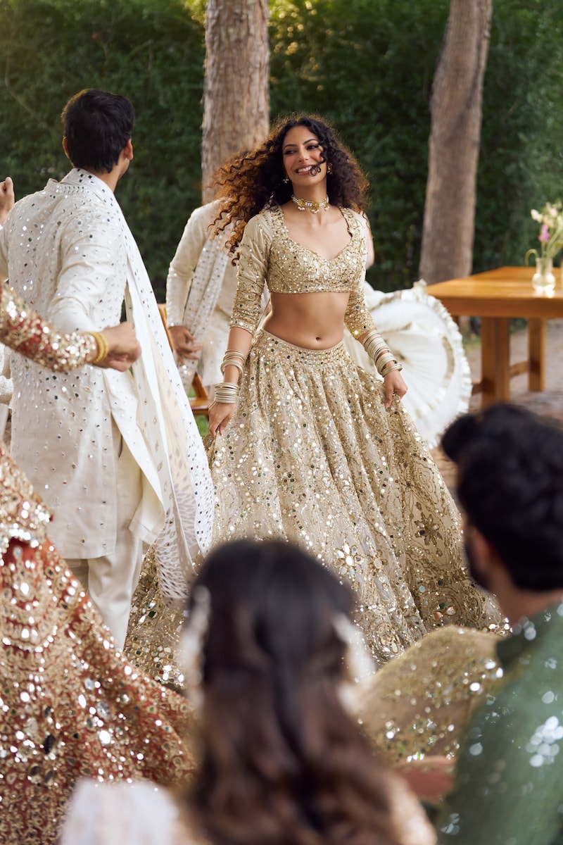 Brides themselves are exploring this duality. Mishra notes, “Many brides still want the traditional grandeur of heavily adorned mirror lehengas, especially for big celebrations. At the same time, there’s a growing number who love the subtler versions with lighter embroidery, tonal palettes, and versatile pieces they can restyle after the wedding.”