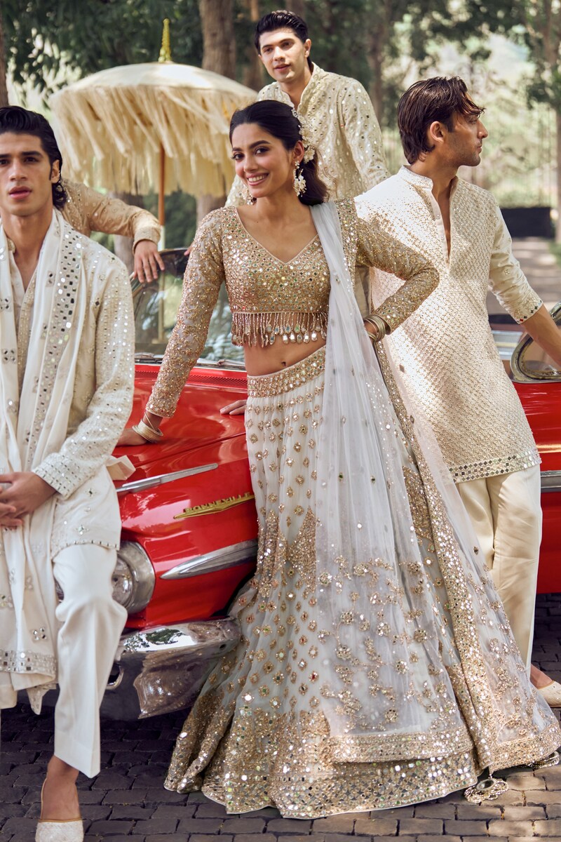 Adding to how mirror work allows the new generation of brides to honour heritage while making a contemporary statement, Mehta shares, “Our brides come to us specifically because they love mirror work. What excites them is that our interpretation of it is delicate, intricate, and very modern – which makes it perfect for bridalwear.”
