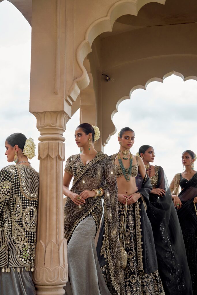 Brides themselves are exploring this duality. Mishra notes, “Many brides still want the traditional grandeur of heavily adorned mirror lehengas, especially for big celebrations. At the same time, there’s a growing number who love the subtler versions with lighter embroidery, tonal palettes, and versatile pieces they can restyle after the wedding.”