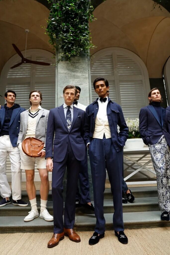 The showcase leaned into something that Ralph Lauren does best: precise tailoring, understated luxury, and a wardrobe conceived for the modern man. Anchored in nautical references, the lineup featured immaculate blazers, refined linen field jackets accented with