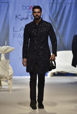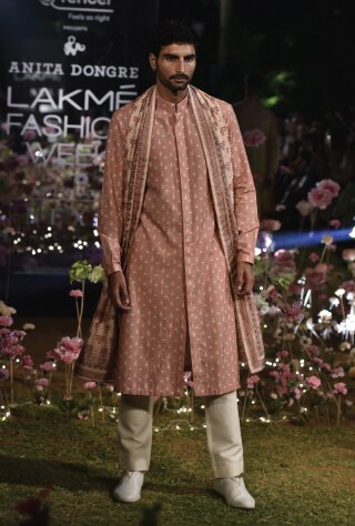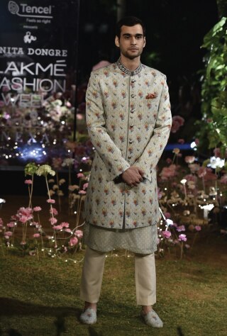 Maestro of style, designer Kunal Rawal gambled with all black and navy blue sherwanis rendering them in tonal textures and deconstructed silhouettes for his Spring/Summer ’19 collection. Unconventional and optimistic, the styles make for a perfect pick for sangeet-cum-cocktail wedding soirees. Enigmatic millennials need not away from embracing all-black this season! Anita Dongre on the other side decks her signature sherwanis in artsy flora and fauna prints for her Spring/Summer 19 collection. The old-school relaxed versions are nipped to fit the form while the length is cropped to give you a note-worthy peek at the contrasting printed kurta underneath. Jewellyn Alvares celebrates the nonchalance of Gen Z choosing monochromatic patterns that anchor the svelte quotient. These styles easily blend with eclectic destinations of a wedding, whether a resort or palatial.