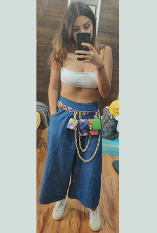 “I think this bag has been the most fun to style. This could go with Indian and Western outfits and brighten any ordinary look,” she says when asked what she liked about the waist-candy! “It has 2 detachable bags and a belt. This helps me style it in so many different ways. I have worn this as a belt, across my chest, around my waist and even attached one of the smaller bags to my jeans loop!”