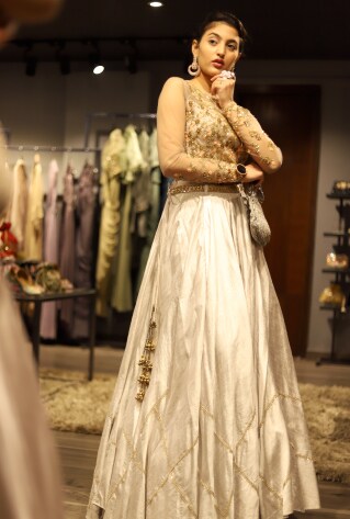 The collection creatively balanced the conventional and experimental, with use of sombre colours, fabrics and flowy silhouettes. Featuring opulent lehenga sets, concept sarees, gowns and fusion silhouettes, the collection had the perfect hint of glamour and elegance customized to complement a quintessential diva perfectly. Fine tailoring, elegant cuts and stunning drapery were the main highlights of the collection where each element was bound together in a glorious mix of traditional embroidery and enhanced by the modern vision of the designers.
