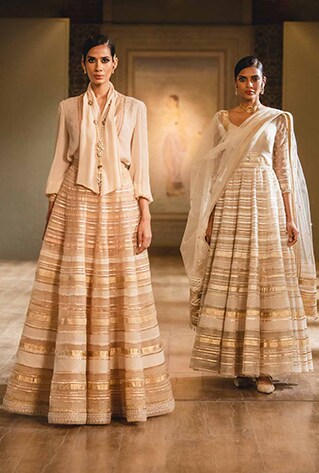 In Tarun’s words, “This collection is a reflection of pieces of my thoughts over the last 25 years. A myriad of techniques, drapes and fabrics have been pieced together over a quarter of a century. When you build something, it is done piece by piece. Whether it’s a partnership, a wedding, or a couture outfit. “