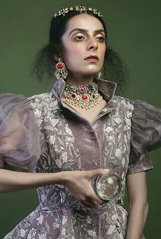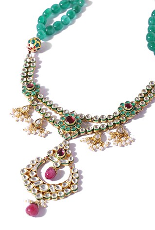 Browsing lust-worthy pieces to add to your collection? Moh Maya by Disha Khatri combines painstaking meenakari with kundan embedding while Belsis’s Jewellery renders it with freshwater pearls and danglers from Firdaus by Akshita are bejewelled with emeralds for a Mughal-inspired appeal. Traditional navratna style finds its way into cocktail hour glamour with Moh Maya by Disha Khatri’s statement piece. Indian couture and kundan are quintessential pairings you can pull off effortlessly, and you will never go unnoticed adorning these charmers.