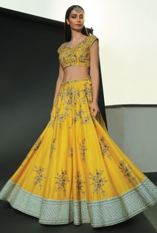 The illuminating yellow hue speaks bounty confidence. The colour breathes freshness into any occasion and makes you stand out from the popular blushes and blues. Joyous and radiant, the colour can be pulled off effortlessly for a sunlit daytime festivities. Amongst all the shades from the sorbet rainbow, yellow is the one to influence the most number of head-turns with its vibrancy.