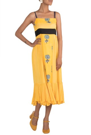 Yellow is the perfect hue to combat the dreary climate. Inspiring the bliss of summertime, this floral printed strappy dress is perfect to brighten up your day without the sunshine. Make sure you say hello to your style admirers!