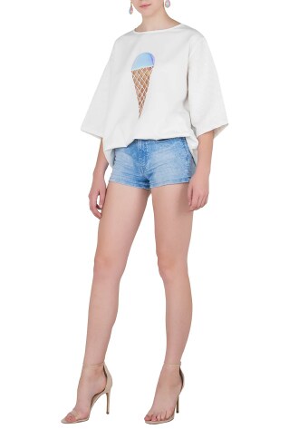 Turn on your playful side and make a splash in this chic ice cream appliqued top. The lounge wear comfort of this uber-stylish top gives you enough reasons to head out on a rainy day.