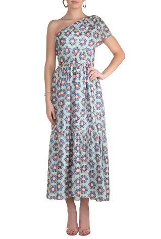 Heading out for a brunch date on a rainy day? Give away flirty vibes in this vibrantly printed one-shoulder number by Pranay Baidya. The breezy style is perfect to vibe with the refreshing weather.