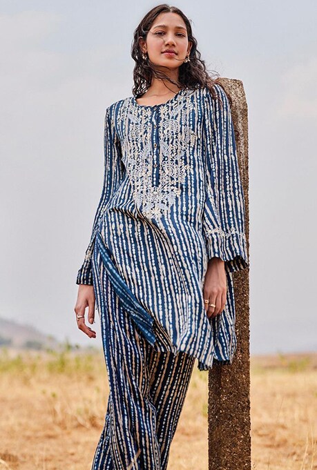 Anita Dongre’s Grassroot label is an example of an ethically made, sustainable fashion rooted in India’s rich cultural heritage. This brand champions sustainability and empowers female artisans from rural communities, preserving traditional crafts while providing them with economic opportunities. The Grassroot collection features a vibrant array of sarees, kurta sets, and dresses, each adorned with intricate hand embroidery and created using time-honoured dyeing techniques.
