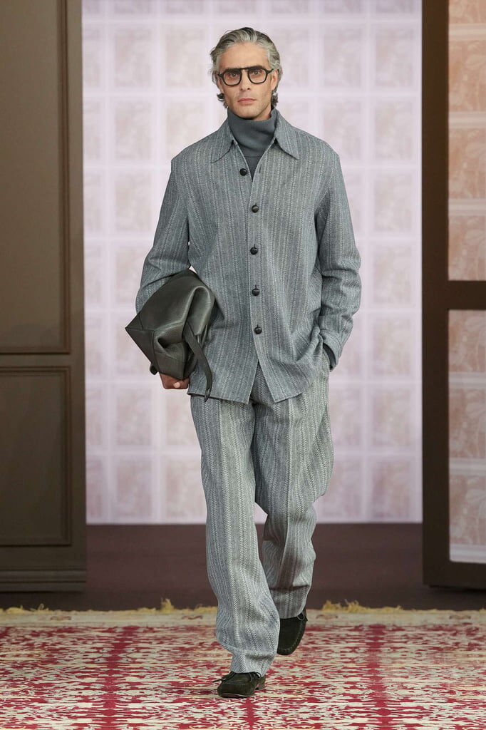 Returning to Milan after last season’s Dubai sojourn, this homecoming show refocused attention on the importance of home – and the closet in particular – as a space of preservation. In Zegna’s wardrobe, past, present, and future coexist. Instinct and intuition were visible throughout the designs, as models strutted down the runway in looks defined by thoughtful cuts, layered textures, and considered patterns.